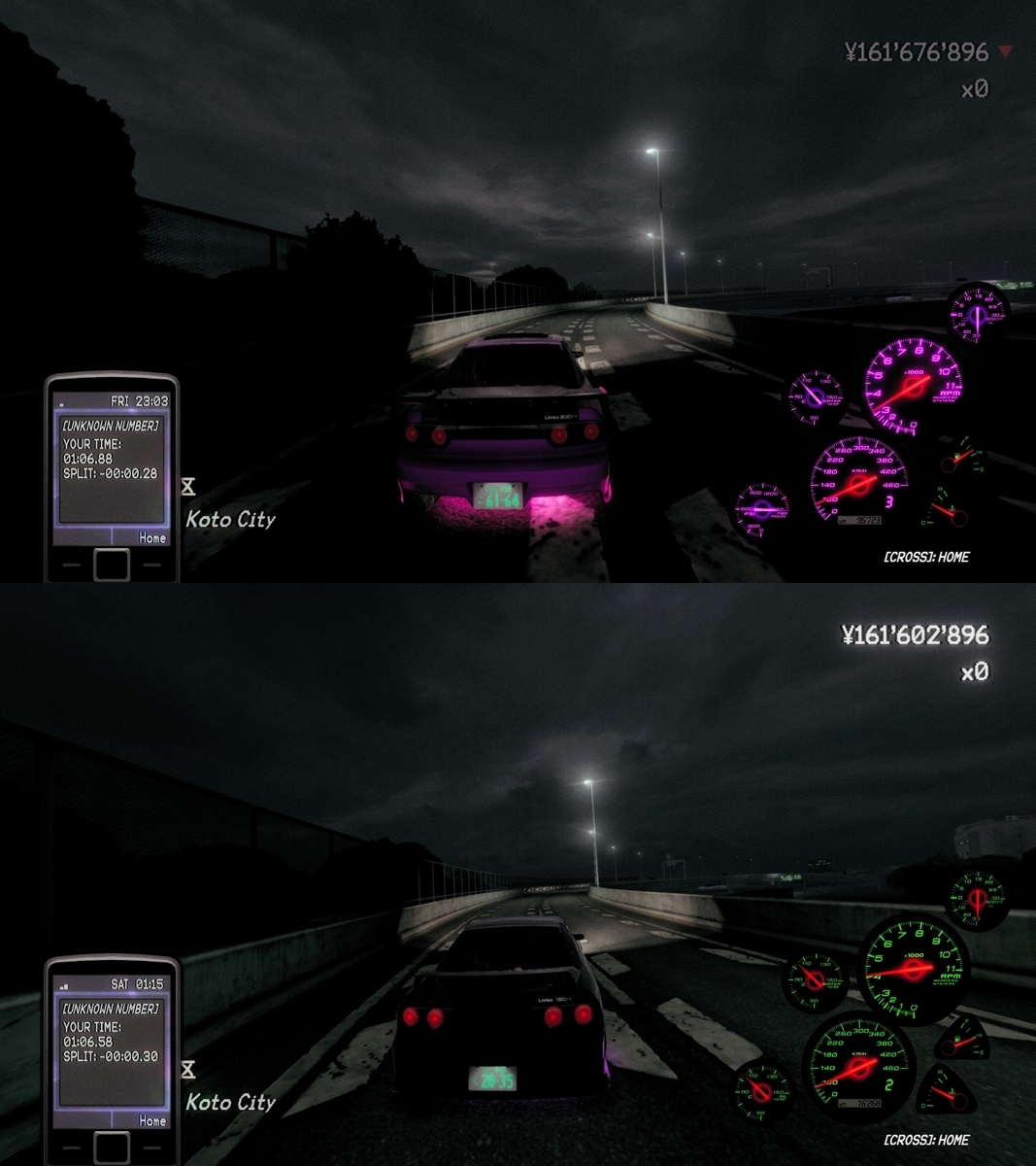 ここでの差は新砂と同じく、180RSの高速域での粘り勝ちに起因するのかと。似たようなアザーカー配置を仮定して、より速くスピードを残せたのはやっぱり180RSで、スペック上の速度差をココでカバー出来ていることや、本線合流前のカーブでも寄せるとこ寄せて立ち上がって行けるのも強みでした。