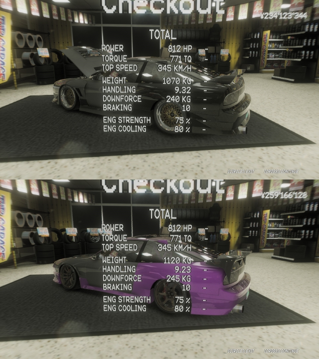 さすがにダウンフォース5Kg分の差で動きが変わるゲームでは無いと思うんで、あとはカスタムもしながらって具合でやってみました。