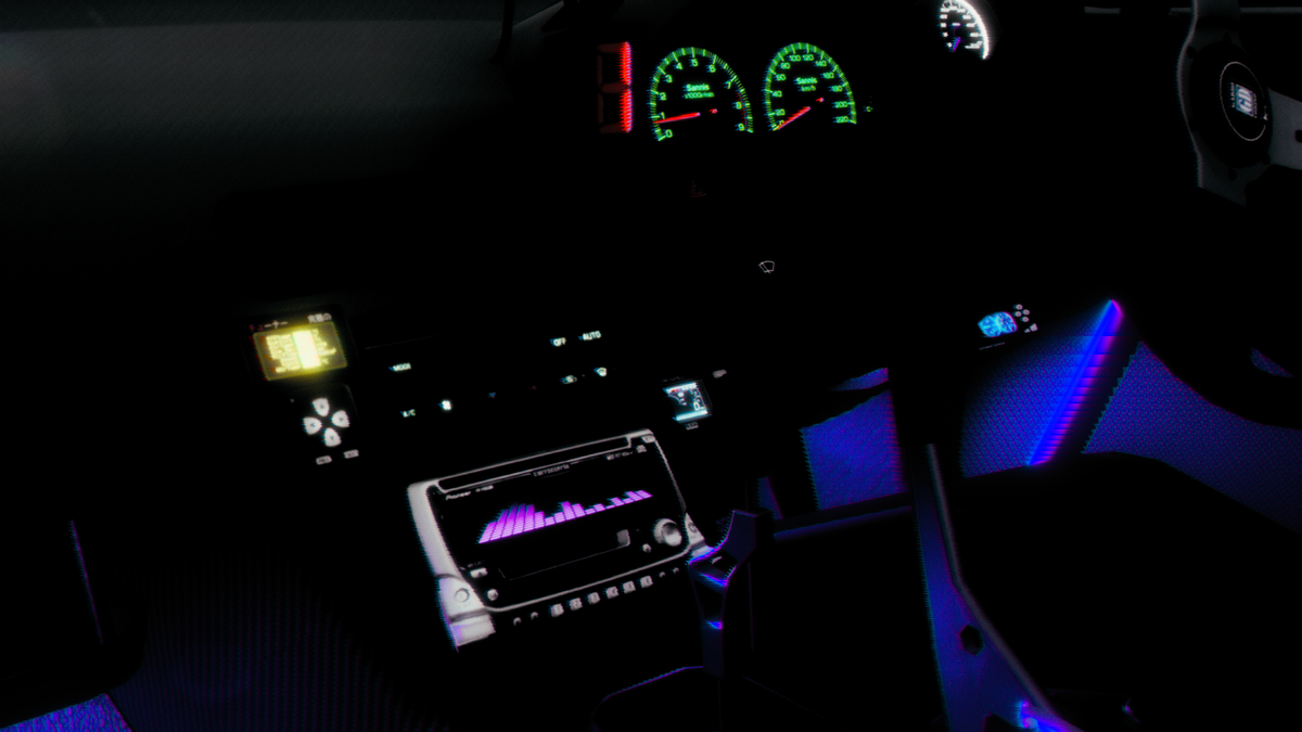 いわゆるオーディオイコライザー、今じゃすっかりこういうオーディオを着けてる車は見かけなくなってしまいましたが、Night Runnersというゲームでは時代設定に合わせたドレスアップも用意してあるのがイイですね。
