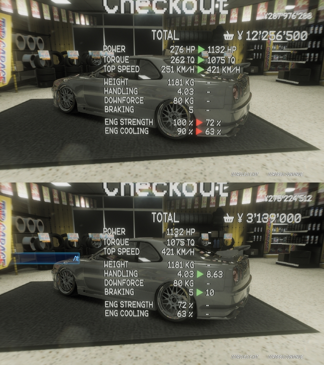 ノーマルのパワーとハンドルをそれぞれチューニングすると大体こんなところに。