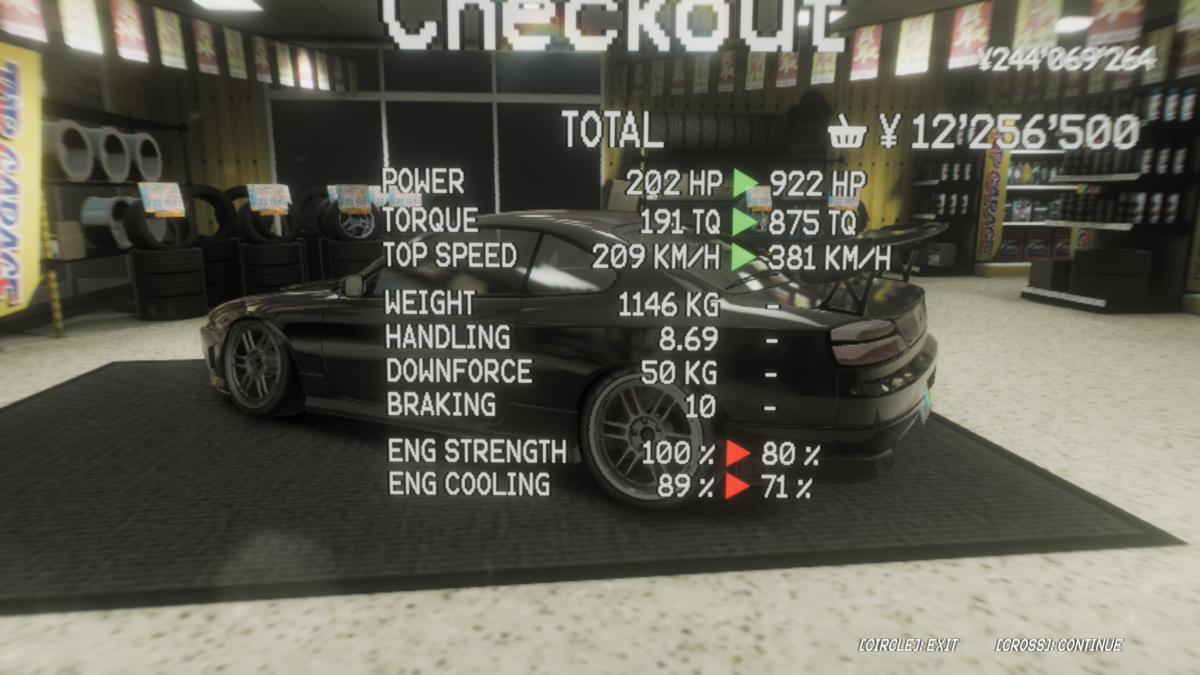 ちなみにトップスピードは180RSや200RSと巡航速度は変わらんけどニトロありでのスピードは数キロ劣る結果に。最高速はツラいんで、活躍どころはタイム関係のイベントがメインになるかと。