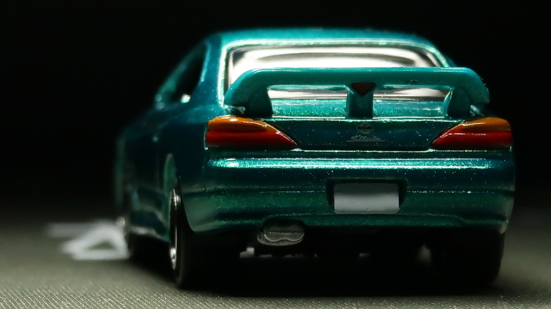 何といってもメタリックグリーンの色合いの美しさ。そこに軽快なFRスポーツマシンのS15シルビアとの組み合わせがまたイイ具合にカスタムカーなカンジを引き出し、差し色の入った箇所も多くディティール面もプレミアム版ほどで無いにせよ十分。