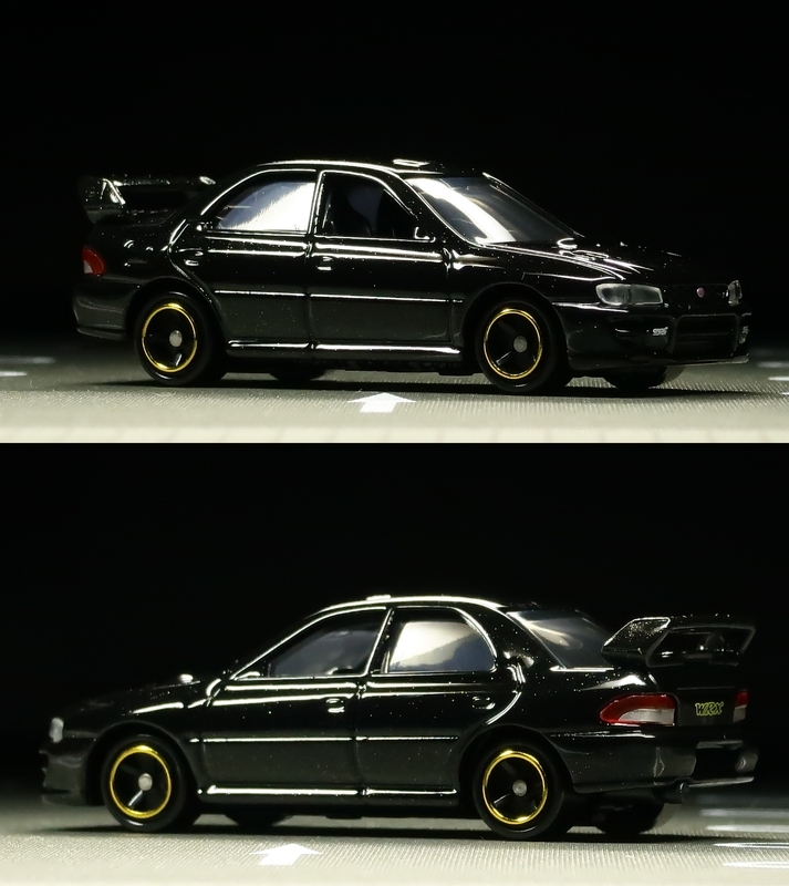 ブラックメタリックでペイントされたGC8インプレッサ バージョンV。セット内の車種と比べてカラーリングのインパクトは劣るものの、現実感あるカラーリングで愚直にカッコよさを引き出しています。