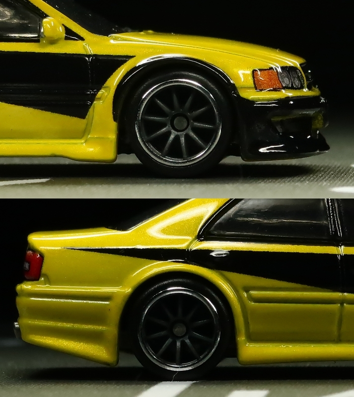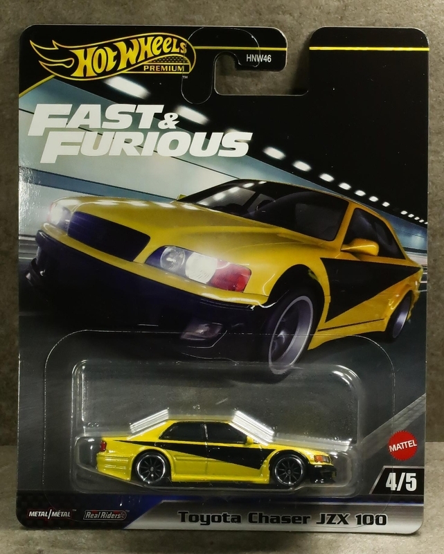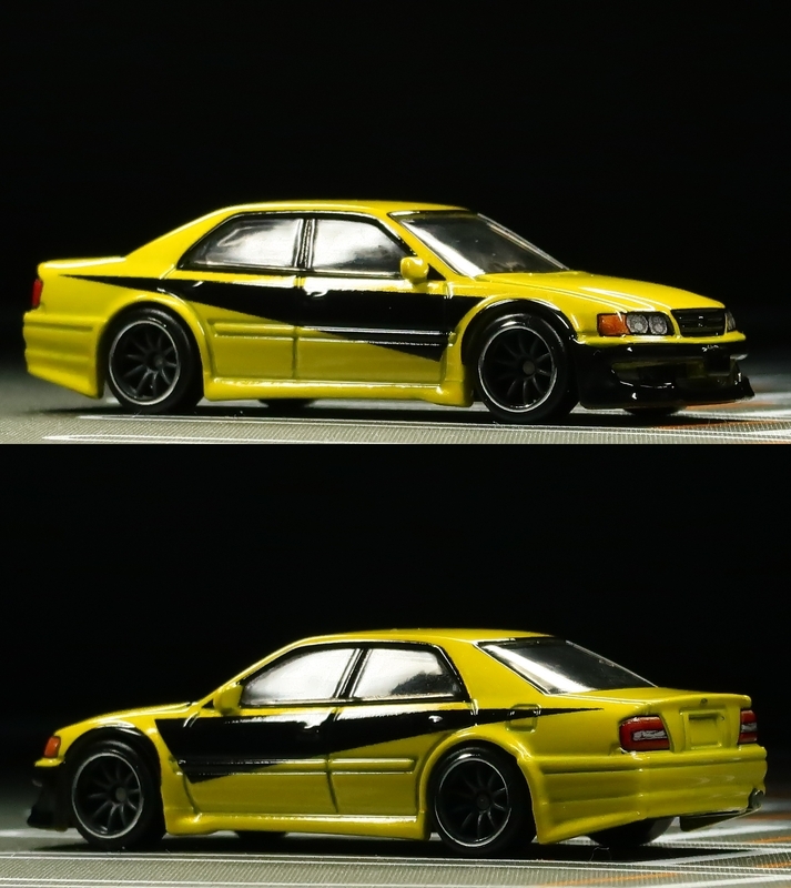 ワイスピX3で立駐を使ったバトルシーンで、FDとの追走にちょっとだけ登場するハデな色使いをした100系チェイサーがモデル化。更に上位クオリティのエリート64で出たと思ったら、プレミアムラインでも登場となりました。